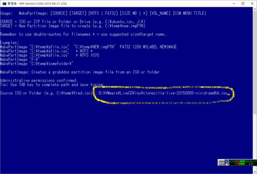 MakePartImage.cmd でisoイメージをFAT32パーティションイメージに変換