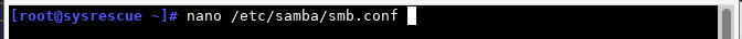 [root@sysrescue ~]# nano /etc/samba/smb.conf